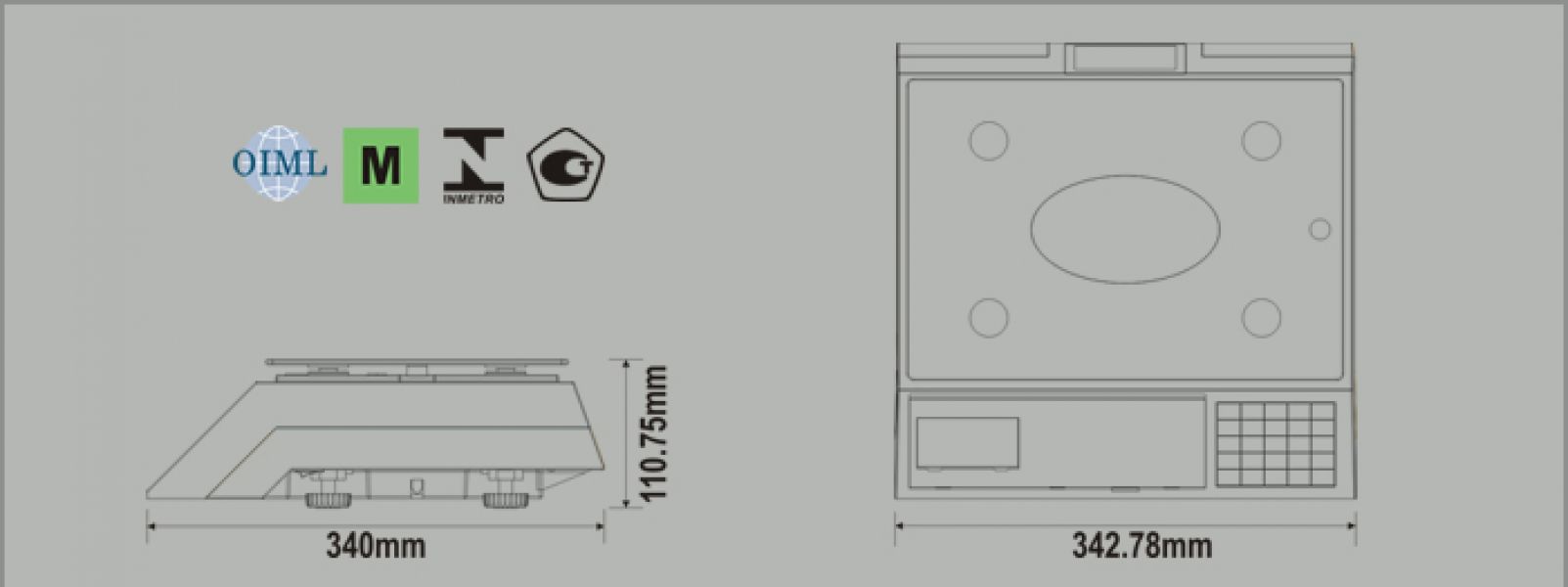 Dimensiune platan: 330 x 230 mm. Acumulator inclus. Display pentru client: pe partea opusa. -