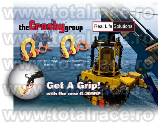 Total Race comercializeaza : chei de tachelaj model G 209R tip omega marca Crosby, cheie tachelaj cu bolt si siguranta de blocare. Capacitati de la 6,5 tone metru pana la 55 tone metru. In conformitate cu: cerintele de performanta ale Fed. Spec. RR-C271D tip IVA, grad A, Clasa 2, ASME B30.26. Factor de siguranta: MBL = 5 x WLL (Sarcina maxima de lucru) . Calire si Temperare pentru duritate, rezistenta maxima . Material: otel aliat forjat Toate partile arcuite a cheilor de tachelaj ROV, doar daca nu este specificat altfel, sunt galvanizate si dupa aceea vopsite galben fluorescent.