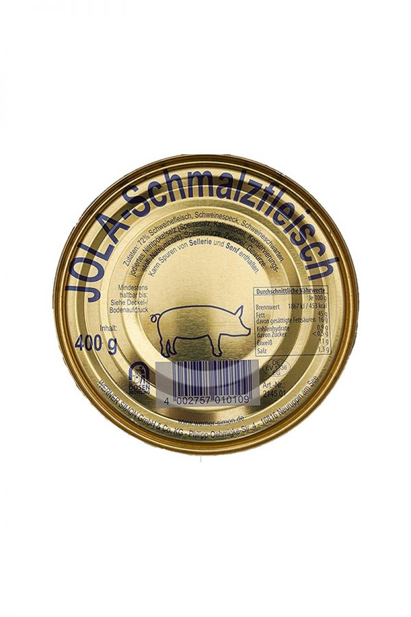 Total Blue comercializeaza din stoc conserva carne porc in crusta de untura Jola, 400 de grame, productie Germania.