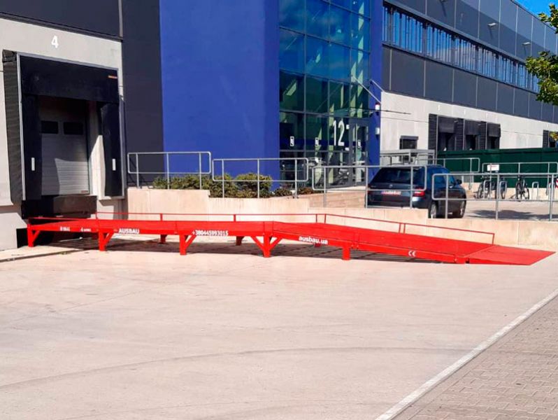Durabile rampe de încărcare pentru vehicule utilitare AUSBAU-VR. Rampa pentru depozit permite atingerea nivelului cadrului vehiculelor utilitare de la nivelul zonei de încărcare a depozitelor. Noi fabricăm modele cu sarcina de la 5 până la 8 tone și mai mult.