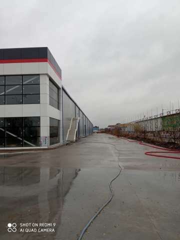 Proprietatea este realizata pe structura metalica cu inchidere perimetrala din panouri tip sandwich din materiale incombustibile cu o suprafata totala de 6.000 mp din care au mai ramas libera suprafata de 3.800mp hala si 200mp showroom. Spatiile industriale oferite spre inchiriere beneficiaza de birouri la mezanin, rampe de incarcare, platforme de acces tir, sistem de sprinklere si ventilatoare cu detectoare de fum.