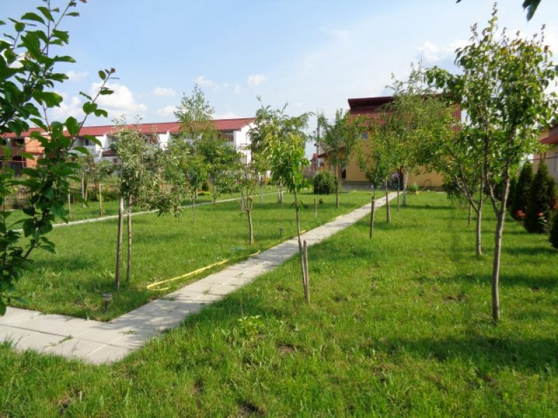 Proprietar, vand casa moderna P+M, complet mobilata, si anexa, situata in comuna Giarmata, Su 150 mp, Sc 200 mp si 1000 mp suprafata totala teren. Casa este compusa la parter (90 mp) din: hol, living, 1 camera, bucatarie + camara, baie, camera tehnica si 1 terasa inchisa. Casa scarii e prevazuta cu balustrade inox si sticla. Mansarda (70 mp) este compusa din: hol, 2 camere, baie si terasa deschisa de 35 mp. Anexa este compusa din 2 incaperi, wc + pod. De asemenea, terenul cuprinde si o terasa cu gratar din beton si alei amenajate din pavaj de beton, gradina cu pomi fructiferi si plante ornamentale si alei din dale de beton.