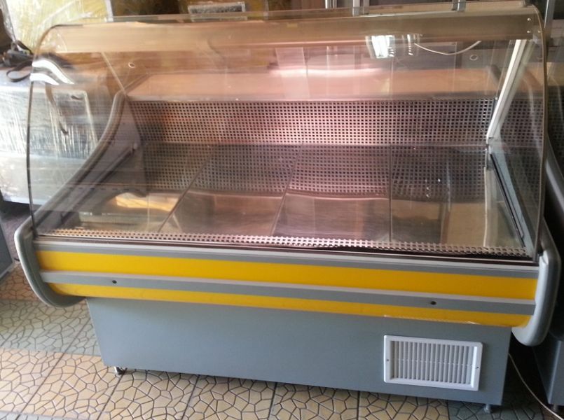 Vitrina frigorifica pentru mezeluri si carne, dimensiuni: 150x110x130 cm, interior 70 cm, geam curbat, 1 spatiu depozitare in spate, comanda digitala si iluminare interioara. fabricatie octombrie 2012. Pret 600 Euro fara Tva bucata.