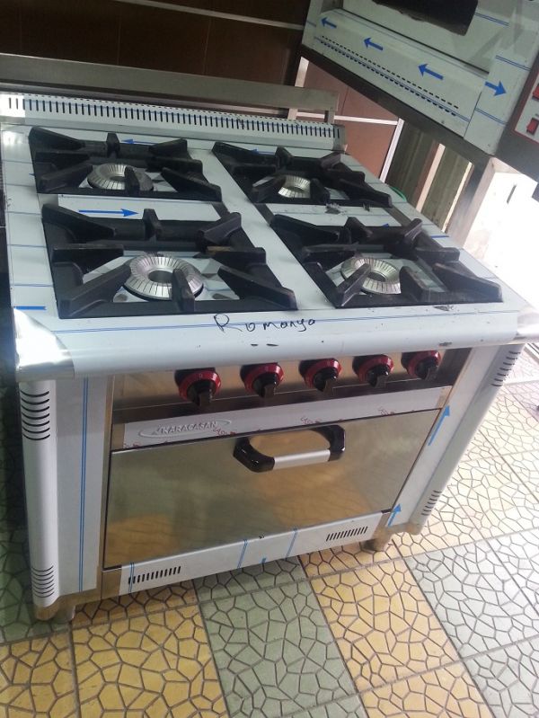 Aragaz 4 ochiuri si cuptor profesional dimensiuni:1000x1000x850mm - cuptor dim: 650x700mm flacara diametru 17 cm, gaz natural, consum 36,5kw, 20 mbar, greutate 150kg, pret 700 Euro + Tva.Produs nou cu garantie 12luni.