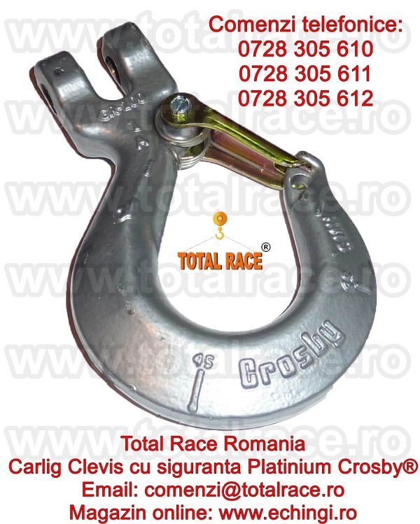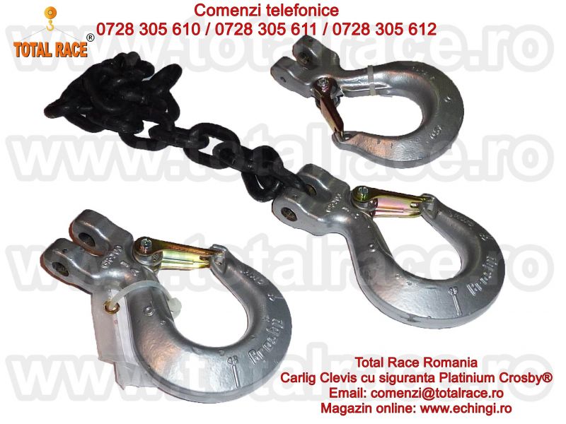 Total Race Romania comercializeaza carlige clevis pentru dispozitive ancorare complete, carlige macara grad 100 gama Crosby Platinium , carlige clevis cu siguranta pentru lant ancorare, carlige macara ridicare sarcini intre 1,4 tone si 21 tone, carlige Clevis lant cu siguranta grad 100.