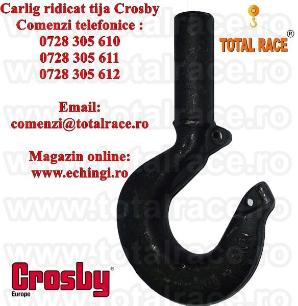Total Race Romania comercializeaza carlige ridicare cu tija macara , carlige cu tija pentru macara , carlig cu tija de ridicat sarcini la inaltime , carlig macara cu tija , carlige ridicare cu tija capacitati disponibile de la 0,75 tone pana la 300 de tone. Carligele de ridicare cu tija pentru macarale sunt disponibile in varianta otel aliat, otel carbon. Carligele cu tija au un design propriu, carlige sunt atent forjate si ofera duritate maxima , fara o greutate excesiva. Fiecare cârlig Crosby cu tija are o cama pre-perforata, care poate fi echipata cu siguranta de blocare.