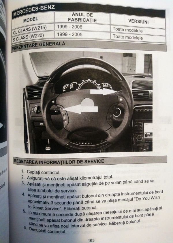 Manualul contine proceduri de resetare manuala a martorilor de service si ulei a instrumentelor de bord fara aparate de diagnoza.