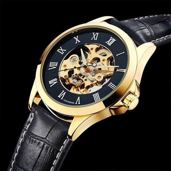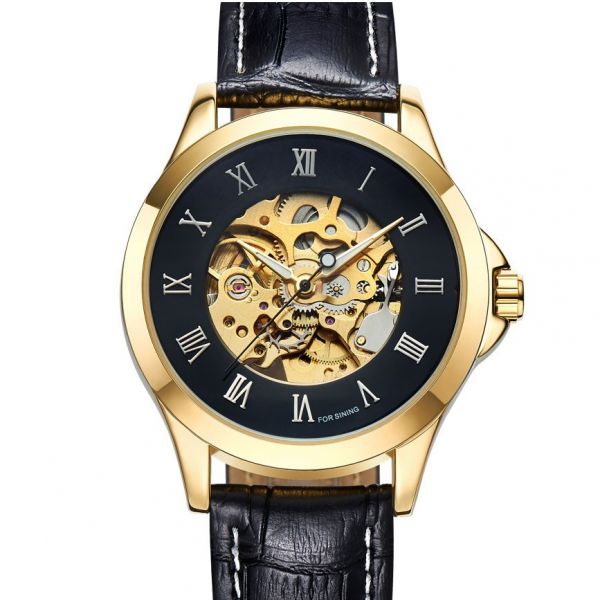 - Combinatii de culori auriu si negru ce denota eleganta si rafinament, adaugand o forma clasica, cifre romane si o miscare de schelet automatica acest ceas superb este intr-adevar pentru barbatii de clasa inalta. Livrare gratuita in toata Romania cu verificare colet inainte de a achita. Click si intrati pe site pentru mai multe modele.