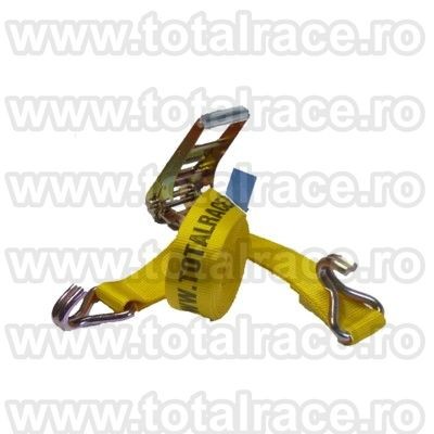 - Total Race comercializeaza cu livrare rapida din stoc chingi de ancorare sistem 75 mm cu latime banda 75 mm lungime totala chinga ancorare 12 metri, in conformitate cu EN 12195 – 2 , elongatie < 7 % cu clichet Stf 500 daN, din 2 parti , carlige diverse modele ; din poliester, culoare galbena. Capacitatea de ancorare este Lc 5000 daN drept si Lc 10000 daN peste incarcatura, eticheta ancorare - date de identificare produs , chingi fixare marfa 10 tone. Chingile textile de ancorare 10 tone sunt insotite de Declaratie de Conformitate. Se utilizeaza pentru legarea, ancorarea si protejarea marfurilor in timpul transportului, sunt chingi usor de folosit si nu deterioreaza marfa.