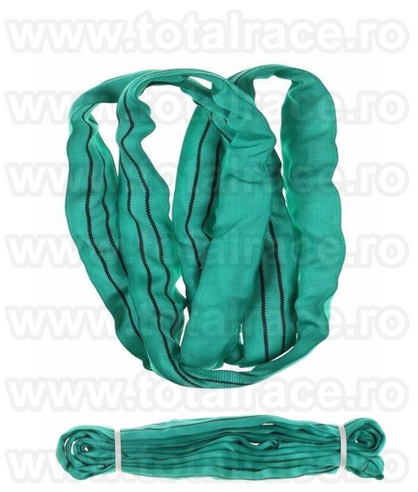 Chinga textila de ridicare circulara capacitate 2 tone lungime utila 1 metru, lungime desfasurata 2 metri,culoare verde, productie UTX Olanda.Total Race Romania livreaza chingile/sufele circulare insotite de Declaratie de Conformitate, tabel de sarcini si instructiuni de utilizare.