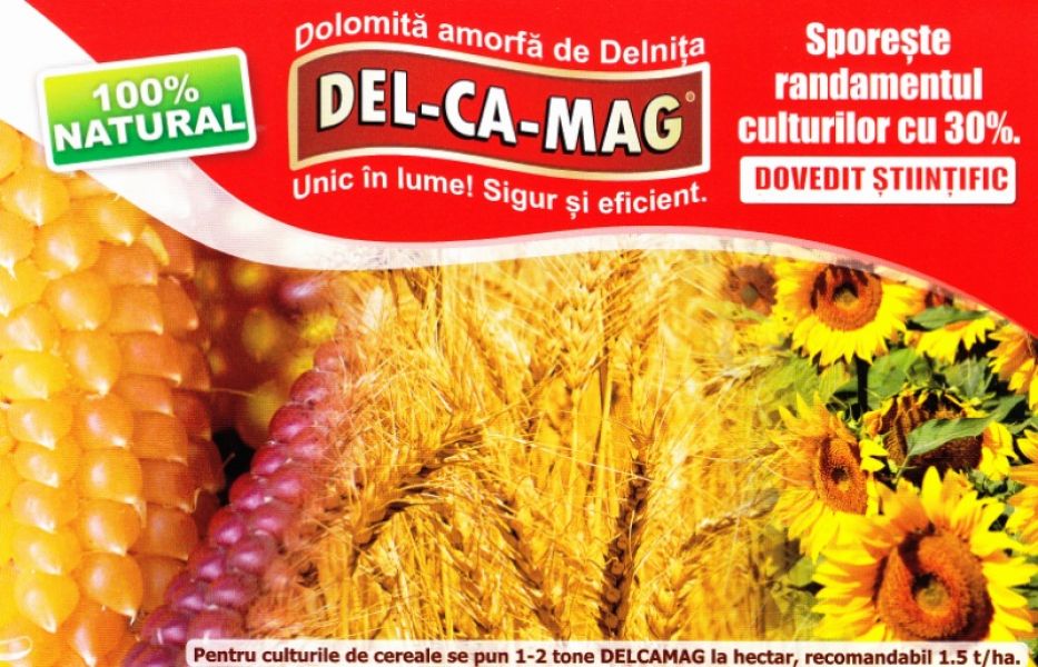 DELCAMAG-ul este un supliment alimentar si amendament, 100% natural, avand la baza calciu si magneziu, nu e nevoie de alte ingrasaminte, se poate pune in orice anotimp, sporeste randamentul culturilor cu 30% , protejeaza de seceta si daunatori, creste productivitatea vacilor de lapte si greutatea corporala a viteilor, porcinelor si puilor de carne.