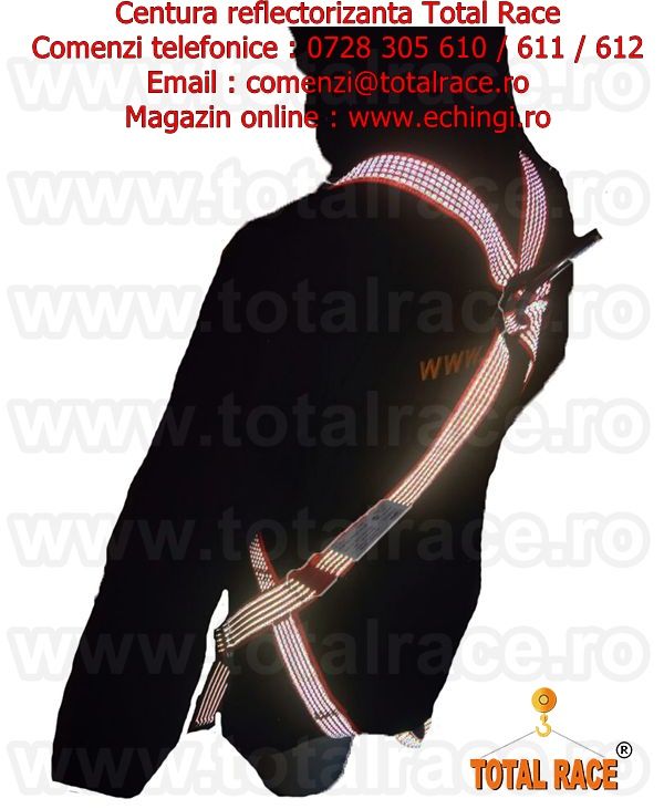 - Total Race livreaza din stoc Bucuresti centuri reflectorizante , hamuri reflectorizante , echipament individual de protecţie împotriva căderilor de la înălţime.Centura reflectorizanta poate fi folosita oriunde este importanta o mai mare vizibilitate. Hamul cu banda portocalie este potrivit pentru industria feroviara, este fabricat cu fire reflectorizante tesute in chinga, ceea ce ofera un nivel de vizibilitate fara precedent in zonele cu lumina slaba.