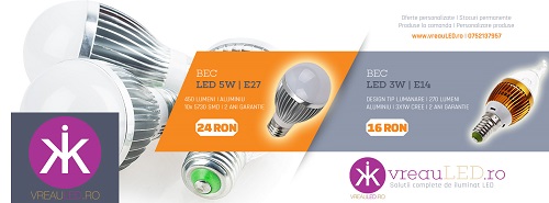 - Iluminat LED pentru interior/exterior. Solutii complete, oferte personalizate. Becuri, spoturi, proiectoare, lampi, benzi, accesorii, aplice. Paseste si tu in era tehnologiei economisind. Facturi mai mici la electricitate! Economie de pana la 80 la suta fata de iluminatul clasic. 0752137957;