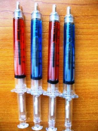 Pix transparent gradat in forma de seringa, foarte haios, mina albastra. Cadou funny pentru medici, asistente, sau cei carora le e frica de injectii (adica noua tuturor).