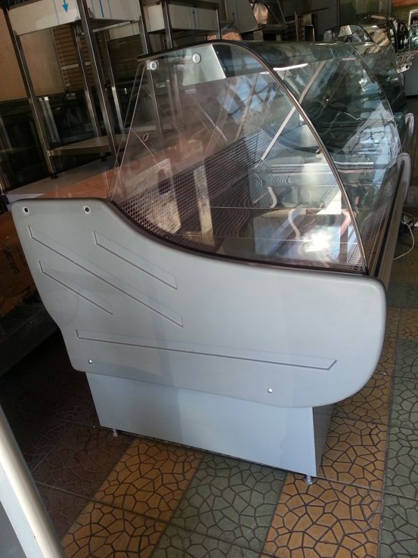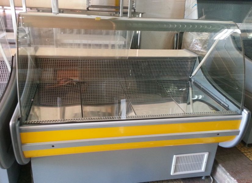 Vitrina frigorifica pentru mezeluri si carne, dimensiuni: 150x110x130 cm, interior 70 cm, geam curbat, 1 spatiu depozitare in spate, comanda digitala si iluminare interioara. fabricatie octombrie 2012. Pret 600 Euro fara Tva bucata.