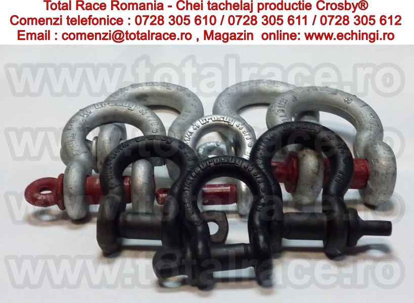 Total Race are in stoc chei tachelaj/gambeti/shackles productie Crosby® diverse modele : chei tachelaj omega , chei tachelaj drepte , gambeti cu bolt filetat , gambeti cu bolt , piulita si siguranta, chei tachelaj speciale pentru teatru,scene,shackles ROV pentru industria marina,gambeti pentru sarcini foarte grele,chei tachelaj off road.Gambetii sunt forjati, material otel-aliat, galvanizati la cald avand capacitatea stantata permanent pe shackles.