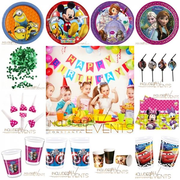 Accesoriile tematice Constanta imprimate cu personajele preferate ale copiilor sunt dorite si apreciate de fiecare copil! O petrecere pentru copii trebuie sa fie accesorizata pana la cel mai mic detaliu cu cele mai colorate farfurii si pahare, paie si servetele tematice, baloane folie cu heliu, fata de masa si banner La multi ani, baloane simple cu heliu, stegulete, trompete, coifuri, confetti, personalizate cu Sofia, Rapunzel, Elsa si Anna din Frozen, super eroi: Spiderman, Superman, Iron man, dar si cu personajele Minnions, Sponge Bob, Barbie, Mickey si Minnie Mouse si multe altele! Accesoriile imprimate Constanta sunt disponibile in tot judetul Constanta, Tulcea dar livram si oriunde in tara! Detalii la website http://www.allincludedevents.ro ,