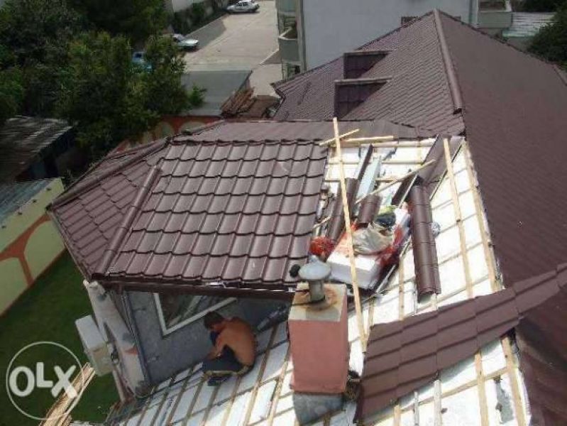 (tabla tip lindab) si de ceramica sau beton de orice tip, sisteme de jgheaburi si burlane, ferestre de mansarda (velux), confectioneaza si monteaza elemente de tinichigerie, aticuri, pervaze, pazii laterale, orice profil la comanda, executa hale metalice (inchideri si structura).