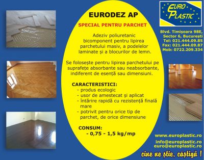 EURODEZ AP: Adeziv bicomponent pentru parchet si placi ceramice (marmura, gazon sintetic, mocheta, pvc, metal, cauciuc, vata minerala, linoleum etc.) . - Raspunde la: info@europlastic.ro