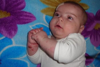 Baietelul nostru s-a nascut pe 2 iulie 2011 cu o boala rara, diagnosticat cu epidermoliza buloasa distrofica (boala fara leac, pana in acest moment)...(la orice atingere sau frecare mai dura ii apar basici cu lichid sau sange atat pe corp cat si in interior...);