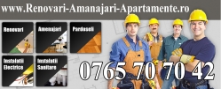 - Preturi de criza, calitate, termen scurt de executie, GARANTIE. Executam urmatorele lucrari: gleturi, zugraveli, montaj (rigips, gresie, faianta, parchet), instalatii electrice, termice si sanitare. OFERTA SPECIALA PT LUNA FEBRUARIE. Tel: 0765707042, web: renovari-amanajari-apartamente.ro (promovat prin Anuntul Magic)
