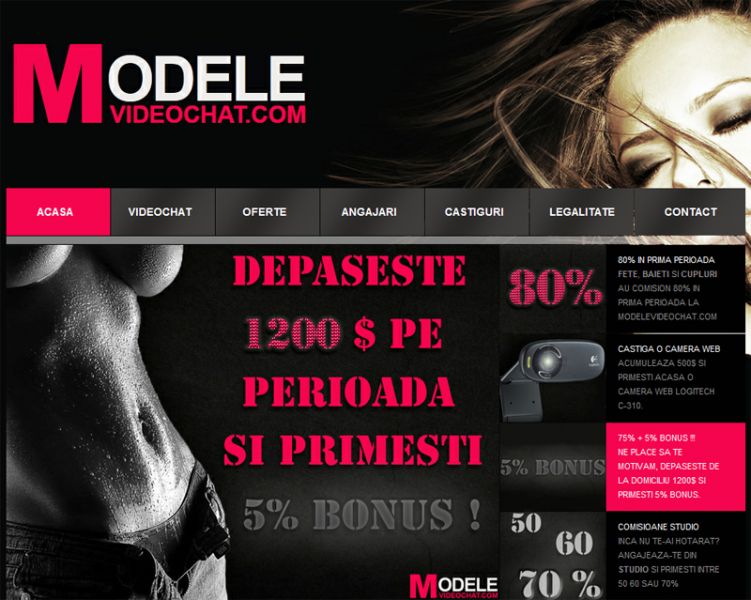 Programeaza-te la interviu la Modelevideochat.com si viitorul suna bine. Comisionul din studio ajunge pana la 70% iar de la domiciliu