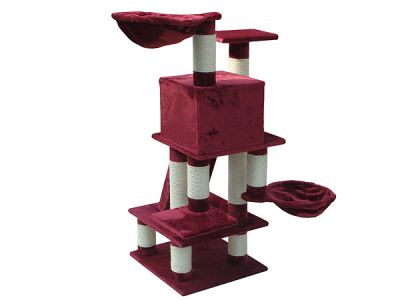 Centru de joaca pisici cu sisal, Dispozitiv pentru zgariat si loc de joaca pisici, Culori disponibile: maro, crem, portocaliu, visiniu, negru, Inaltimea totala este de 115cm, Platforma de baza este de 49cm * 44cm, Sisalurile cilindrice cu diametrul de 8cm, 1 Casuta cu dimensiunile de 32cm * 25 cm, 2 Jgheaburi / Hamac cu diametrul de 30 cm, 1 Scara + diverse platforma, Livrare rapida in toata tara, 0721199684 - Comenzi telefonice