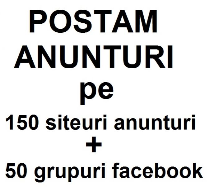 Postam anuntul dumneavostra pe 150 siteuri anunturi romanesti si 50 grupuri facebook targetate pe anunturi.