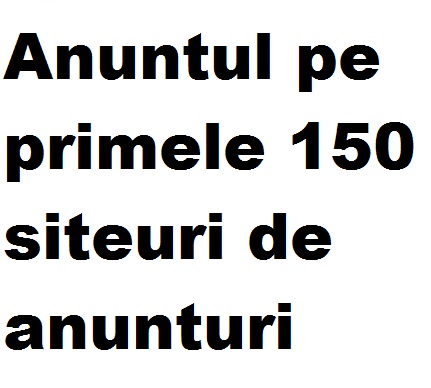 Spune-ne parerea ta despre anuntul "Anuntul pe primele 150 siteuri de anunturi".