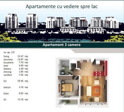 - In zona Tei, Neoland va recomanda un apartament de 2 camere cu o suprafata utila de 59,45 metri patrati amplasat intr-un imobil construit in anul 2008. Apartamentul este dotat cu usi din lemn Pinum, parchet triplu stratificat, in dormitoare mocheta, gresie si faianta in bucatarie si grupuri sanitare, geam termopan cu tamplarie din aluminiu si climatizare individuala. Apartamentul se afla amplasat intr-un complex rezidential aflat in vecinatatea Lacului Tei care va ofera facilitati de recreere: din sala de forta, fitness si squash.Complexul mai beneficiaza de o curte interioara ideala pentru petrecerea timpului liber si pentru activitati de recreere ale copiilor. Pretul apartamentului este de 175.000 euro cu boxa inclusa si loc de parcare