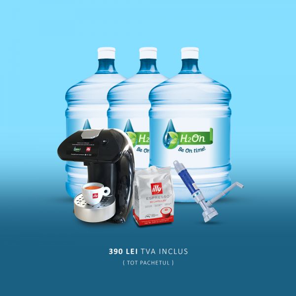 Acum ai apa H2On imbuteliata in bidoane de 19 litri si cafeaua illy.