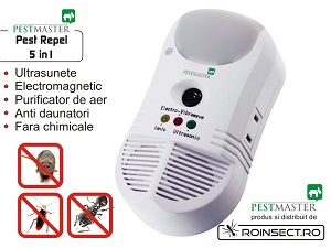 - Pestmaster Pest Repel 5in1 - dispozitiv cu ultrasunete, unde electromagnetice si ionizator pentru purificarea aerului si alungarea daunatorilor casei precum soareci, sobolani, gandaci de bucatarie, furnici si alte rozatoare sau insecte taratoare cunoscute. Comandati pe roinsect.ro si il primiti in 24 de ore.