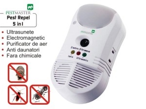 - Pestmaster 5 in 1 este un aparat potrivit pentru familia Dvs, care va scapa de daunatorii casei: soareci, sobolani, gandaci de bucatarie, furnici, precum si alte rozatoare sau insecte taratoare si asigura un mediu proaspat prin intermediul functiei de ionizator. Aparatul acopera o suprafata de 450 mp, ultrasunetele emise indepartand daunatorii. Undele electromagnetice vor alunga daunatorii din peretii casei, din plafoane false, din pardoseli, emitand un camp electromagnetic, ce se progaga prin toata instalatia electrica a casei. Livrarea in 24 de ore.