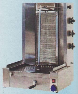 Aparat shaorma / kebab cu 3 arzatoare, capacitate 20kg carne, constructie inox, alimentare gaz, putere 8,1kw, termocupla, actionare motor 220V, dimensiuni 550x500x735mm. Pret: 688 Euro. Website: www.echipamentehoreca.ro , Tel: 0731 347 077