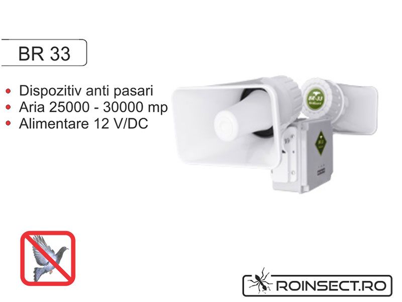 - Aparatul pest X repel BR33 este un aparat ce are alarma acustica , este ecologic, fara poluanti si avertizeaza pasarile ca se afla in pericol fara sa le raneasc. Comenzi la numarul de telefon:0758101503 sau.. http://www.roinsecticide.ro/aparatultrasunete~dispozitiv-electronic-cu-alarma-acustica-impotriva-pasarilor-daunatoare-br-33~435