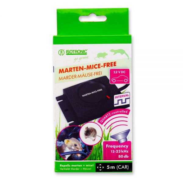- Aparatul Marten Mice Free 78440 este un dispozitiv ce are la baza producerea unui semnal acustic cu o frecventa de 12-23kHz la intervale de cate 15 secunde cu conectare la bateria masini. Comenzi la numarul de telefon :0758101503 sau http://www.anticartite.ro/produse/anti-soareci/aparate-auto/4/11