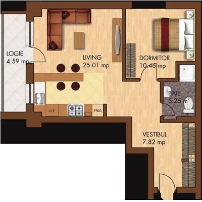 - Citilghts Pipera , apartament cu 2 camere, etaj 3, cu suprafata construita de 64 mp,suprafata utila fara balcon 47.7 mp,suprafata utila balcon 4,5 mp,1 baie, orienare nord/ est, vedere Gradina interioara