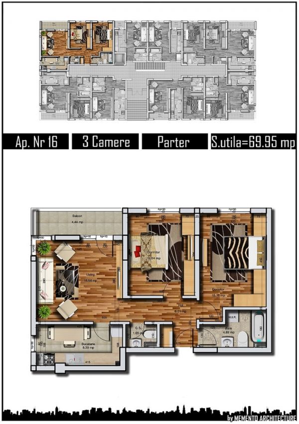 Ai planuri mari pt Noul An? Iti doresti propria ta locuinta? Noi iti punem la dispozitie Apartament cu 3 camere, 70 mp utili, decomandat, finisat cu gresie, faianta, parchet si usi de interior la alegerea dvs., echipat cu centrala proprie, calorifere, prize, intrerupatoare, tamplarie PVC cu geam termopan si baie utilata complet. Apartamentul se afla in bloc nou, situat pe strada Rezervelor , nr. 79, langa statia de R.A.T.B. 178/138. Constructia este formata din D+P+7E, construita integral din caramida, atat exterior cat si interior, cu structura de beton si izolatie de polistiren de 10 cm.