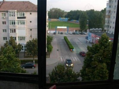 Vederea este atat spre stadionul 1 Mai, cat si in parcarea din spatele blocului.