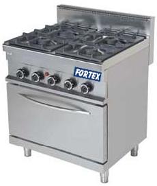 Masina de gatit cu 4 arzatoare independente, alimentare gaz, fiecare ochi cu valva de siguranta, termocupla, si economizor de gaz, flacara de veghe, putere 4x6Kw, cuptor gaz cu aprindere piezo, flacara pilot, termocupla si termostat, capacitate cuptor GN 1/1, putere 6Kw, duze gaz natural sau LPG, picioare reglabile, constructie inox AISI 304, 18/10. Dim. ext. 800x700x900Hmm. Cod 250037. Pret 1449 Euro. Website: www.echipamentehoreca.ro , Tel: 0731 347 077