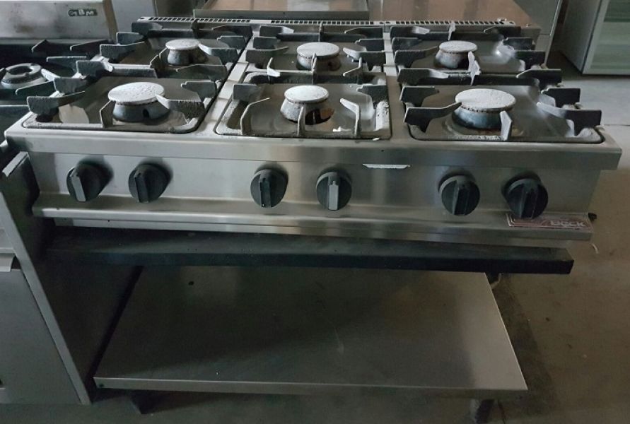 - Aragaz 6 focuri de banc si suport, marca BECK, second hand, Putere = 30 kW, Alimentare gaz, picioare reglabile, Dimensiuni (1050x700x870) mm; Vezi Cod Site 657A; PRET HORECA = 595 Euro; 0732 702 331 / 021 410 90 93;Depozit- Soseaua Alexandriei nr 308; vanzari@horeca-bucuresti.ro; http://www.horeca-bucuresti.ro/aragaze/aragaz-6-focuri-si-suport-marca-beck(1791)