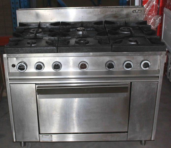 * Aragaz inox gaz 6 focuri si cuptor, marca MBM, second hand, Alimentare gaz, dim. interioare 640x580 m, Dim. 1050x720x850 mm; Vezi Cod Site 736A; PRET HORECA promotie = 700 Euro;