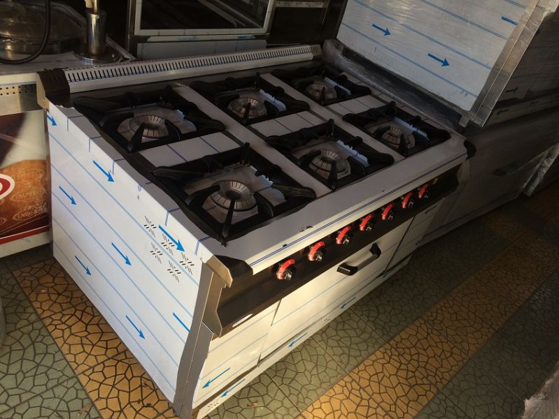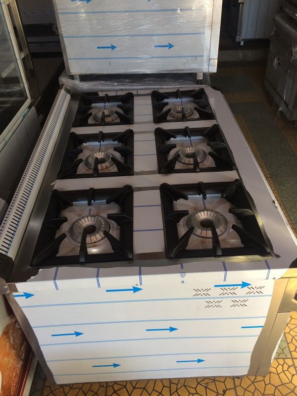 Aragaz profesional inox 6 ochiuri si cuptor, Gaz sau GPL, dimensiuni: 1500x1000x850 mm, dim. cuptor: 660x660 mm, consum 51.5 kw, 20 mbar, greutate 195 kg, diametrul flacara ᴓ 160 mm, gratar= 35x39 cm, pret 1100 Euro plus Tva.