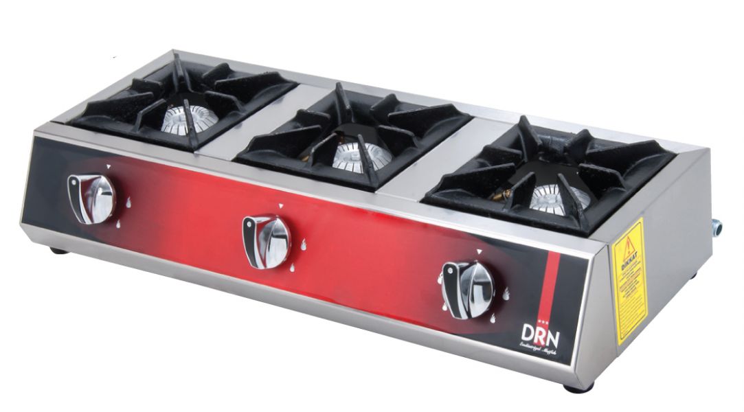 Aragaz 3 ochiuri de banc, Gaz sau GPL, dim: 760x250x200 mm, consum 18 kw, 20 mbar - 210 Euro + Tva.