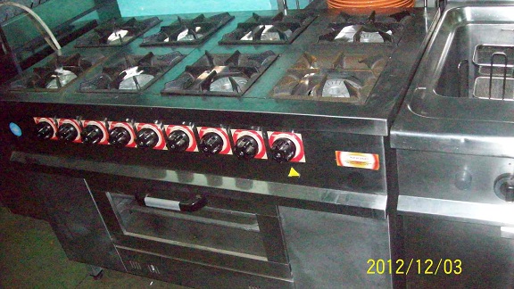 Aragaz profesional cu 8 ochiuri si cuptor nou gaz/butelie 130x70x85cm - pr et 1200e.