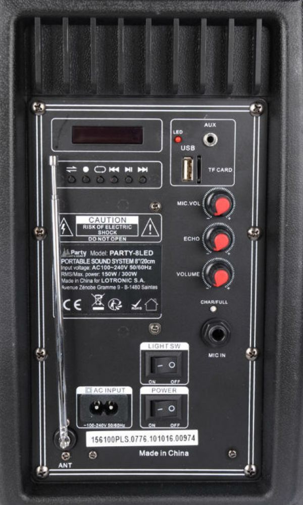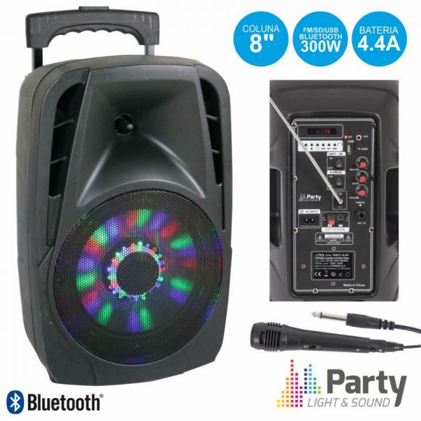 Specificatii: Difuzor: 8 "(20cm) Putere rms/max:150W/ 300 W Aux mp3 Chitara intrare / microfon cu control separat Player-Bluetooth-USB microSD