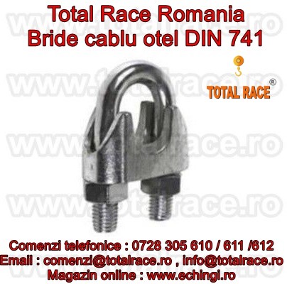 Total Race Romania comercializeaza bride cablu turnate DIN741, bride cablu otel, bride zincate pentru sufe cabluri cu diametru 3 mm la 40 mm , bride metalice de strangere sufe cablu , bride fixare cablu , brida zincata pentru cabluri cu diametru de la Ø3 la Ø40, bride-cleme de prindere cablu, din otel zincat, pentru sufe cablu otel , clipsuri (bride) tip DIN 741, bride zincat cablu tractiune, accesorii cablu tractiune, gama completa bride cablu.