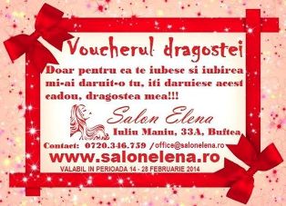 - Daca nu sti ce cadou sa-i faci persoanei iubite cu ocazia zilelor indragostitilor apeleaza la acest voucher . Sigur o vei impresiona. Cea mai buna oferta doar la Salonul Elena din Buftea. www.salonelena.ro / 0720.346.759