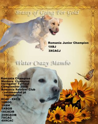 tatal Water Crazy Mambo (Campion de Romania, Campion de Moldova, invingator Turneul Campionilor 2008, Romania Retriver Club recomandat pt reprodutie, RCAC-exc II, 1XBOG,1XBM, 5XBOB, 1XCACIB, 2XRCACIB, 7XCAC, 4XRCAC), mama Brassy of Going for Gold ( Campion Junior de Romania, 1XBJ, 3XCACJ),puii se vor da cu pedigree, microcip, carnet de performanta, carnet de sanatate, vaccinari si deparazitari conform varstei. - Raspunde la: simora84@yahoo.com
