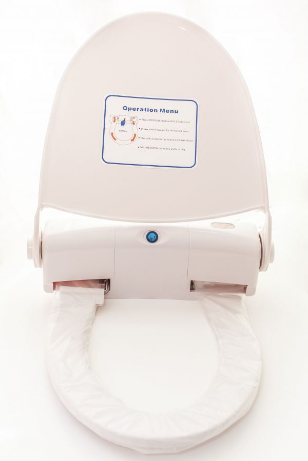Prin actionarea butonului sau a senzorului, mecanismul ruleaza folia igienica atat cat sa imbrace intreaga suprafata a colacului. Folia utilizata este distrusa prin taiere pentru a nu fi refolosita.